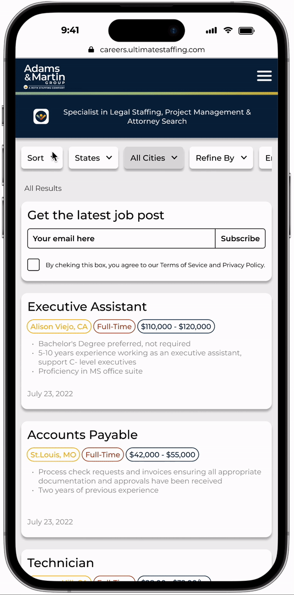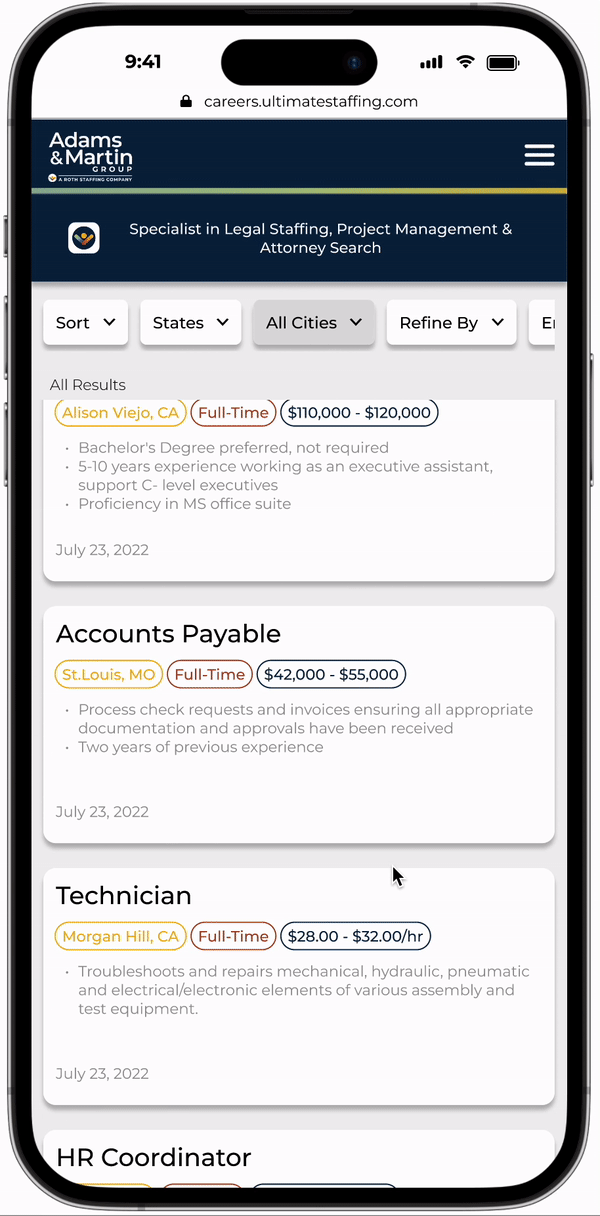 I set out to define a sitemap for all of Roth Staffing’s business lines, however since they all have the same structure and the only thing that changes is the job cards displayed only one is necessary.