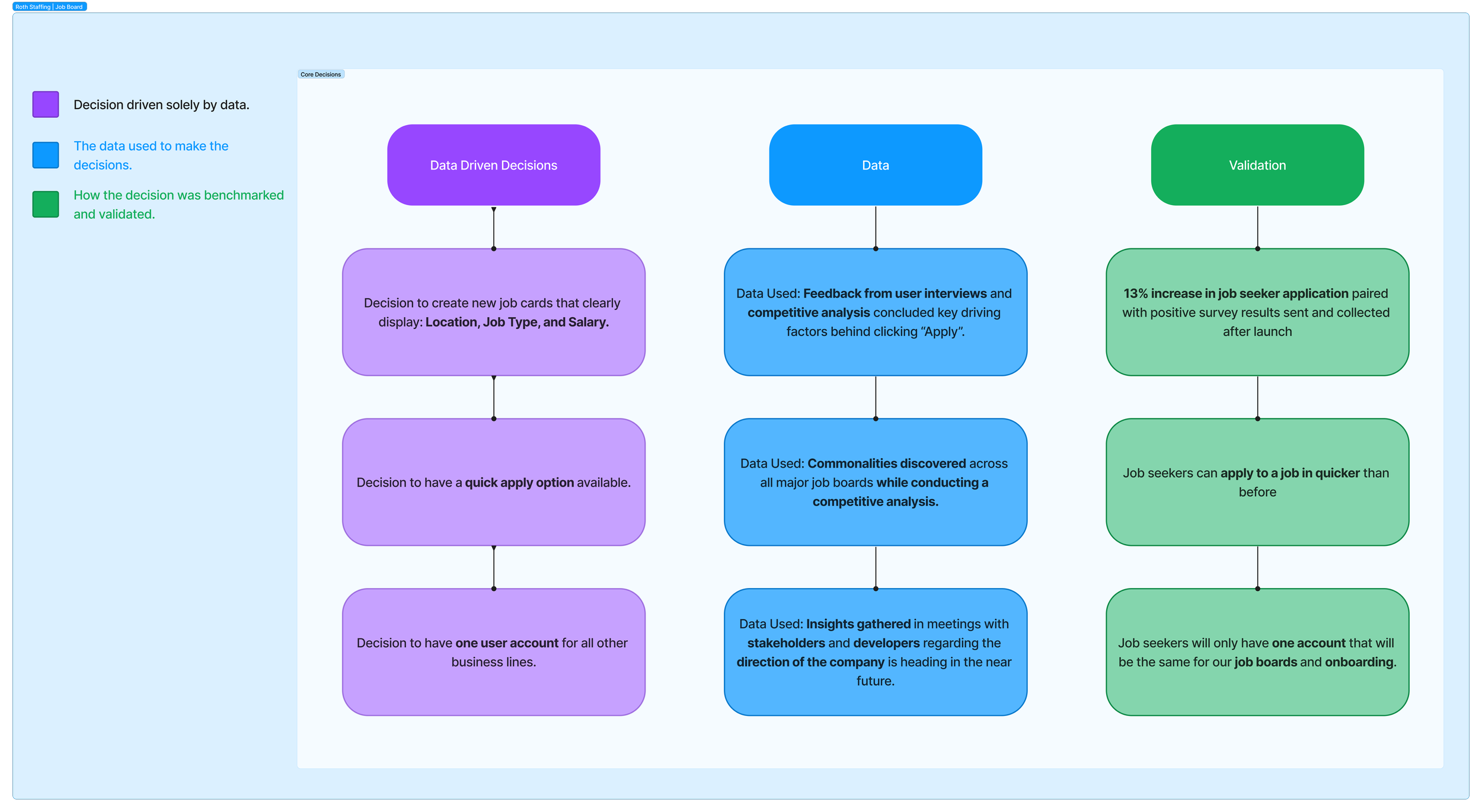 Deeply understand our user’s needs by conducting extensive user research to uncover the key driving factors behind the decision to apply for a job.